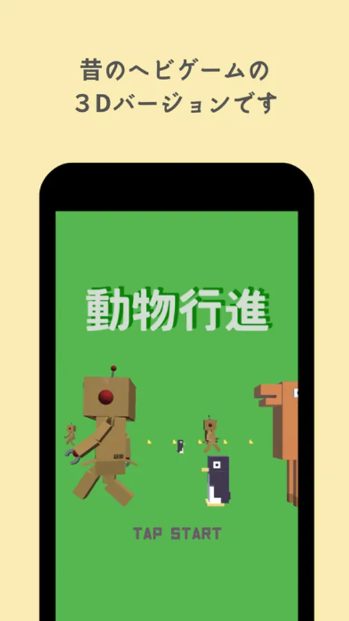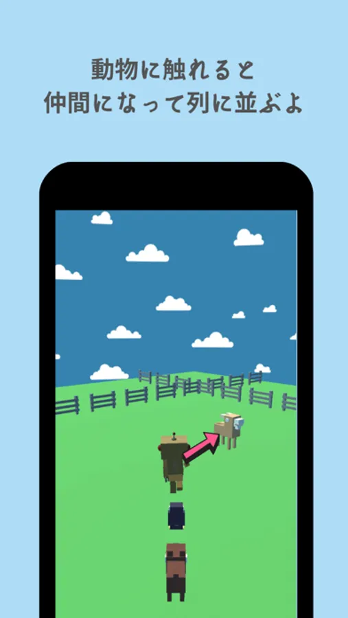 ランダムな場所に一匹づつ現れる動物に触れると仲間になって列に並びます。