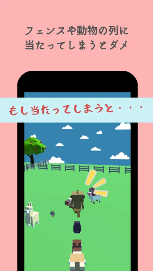 フェンスや仲間にした動物にぶつかってしまうとアウト!!
