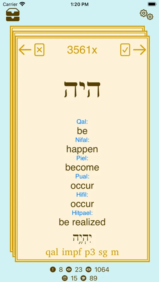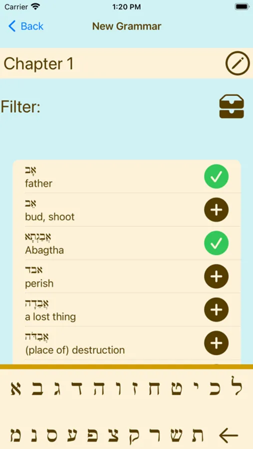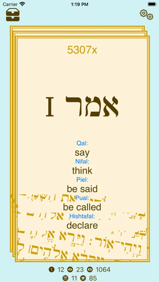 Discover Bible Vocab, a comprehensive way to learn and deepen your knowledge of Biblical Hebrew with our iOS app. Access the complete vocabulary and create automated vocab lists by frequency or biblical reference. You can also create personalized lists to suit your needs, and import or export them at any time. Use the built-in spaced repetition system to effectively review and reinforce your knowledge. Additionally, our app allows you to memorize biblical Hebrew texts. Whether you're a beginner or an advanced learner, Bible Vocab is perfect for anyone looking to improve their knowledge of biblical Hebrew.