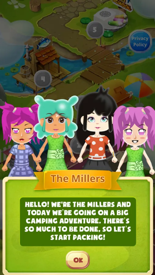 Follow the tutorial finger in order to complete the tasks that each level presents. Drag the items to their correct place, help build the tent for camping, and dress the family for the fun trip you will take!