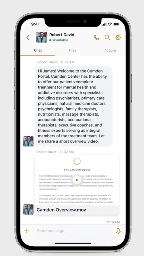The Camden Center app is used for communication and collaboration between all members of the Camden community. Send secure messages, share files, host meetings, and more with the Camden Center app.