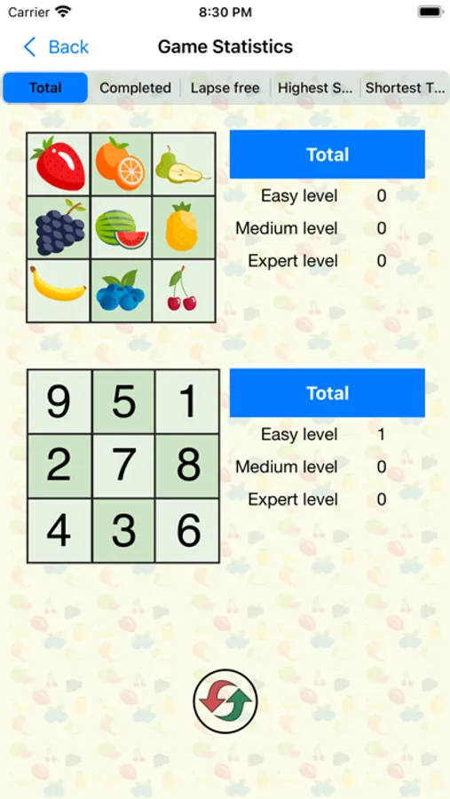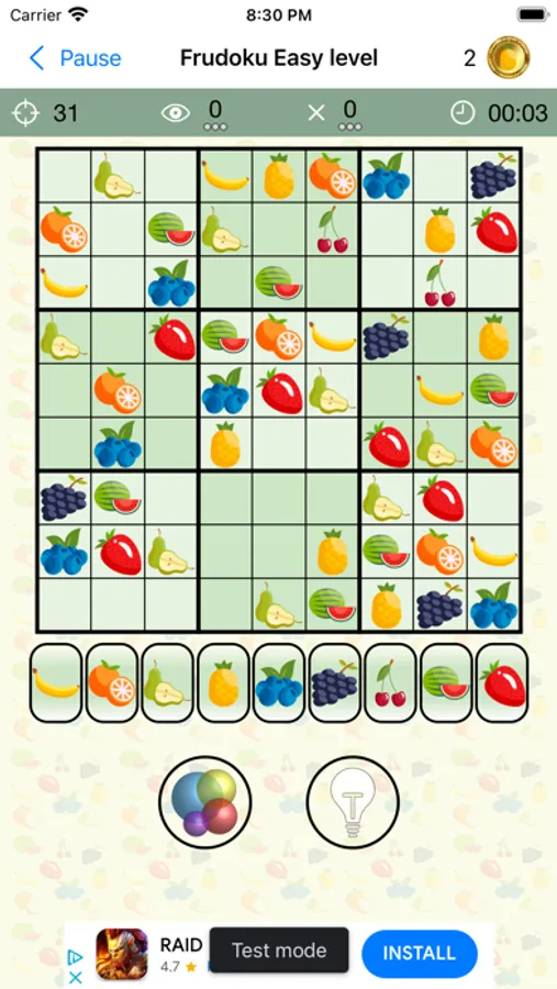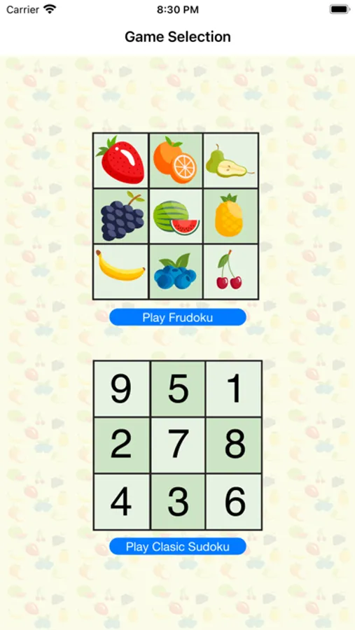Frudoku is a new different representation of the original Sudoku game. It uses a fruit shapes rather than numbers which adds up more fun and excitement. The game offers a choice of original numeral Sudoku or the new fruit shapes Frudoku. There are three levels of challenges and your obtained high score will be posted on the games leaderboard to share with your friends. There are nine medals to achieve, three bronze, three silver and three gold. Enjoy unlimited randomly generated puzzles without commercials.