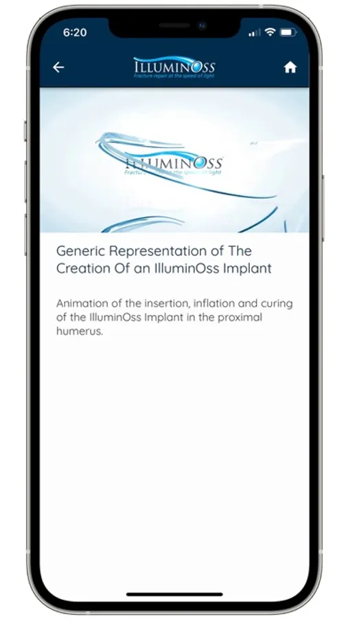 IlluminOss Medical is a privately held, commercial stage medical device company focused on designing, developing, and marketing orthopedic fracture repair and stabilization products that leverage its proprietary system. The IlluminOss system is a minimally invasive technology that allows for fracture repair and stabilization through the formation of a patient specific intramedullary implant. IlluminOss currently markets its products in the EU under a CE mark and in the USA under FDA clearance.