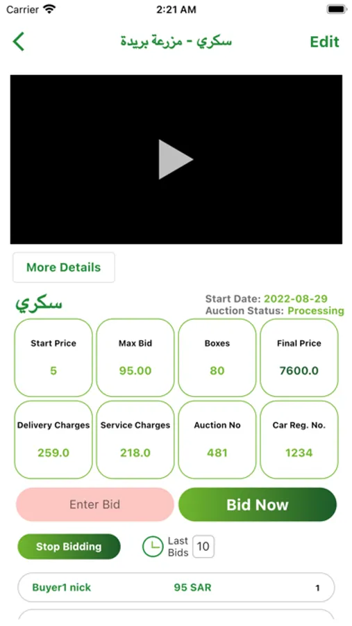Live Market KSA is bidding app, seller puts theirs goods ( dates ) auctions, and buyers bids on auctions, higher bid buyer won auction