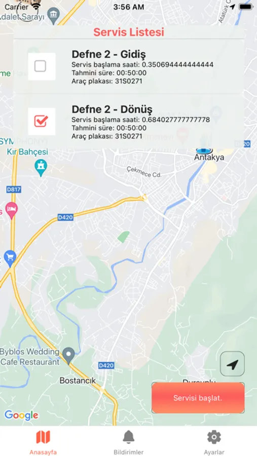 Harita tabanlı olarak, servisin güzergah bilgisini, öğrencilerin servis iniş/biniş ve yoklama durumunu öğrenci velilerine anlık olarak bildirir.
