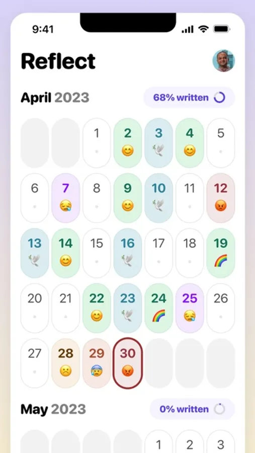 - Calendar View: Look back and reflect on your history with our new calendar view. This offers a unique perspective into your emotional journey over time, and your writing patterns.