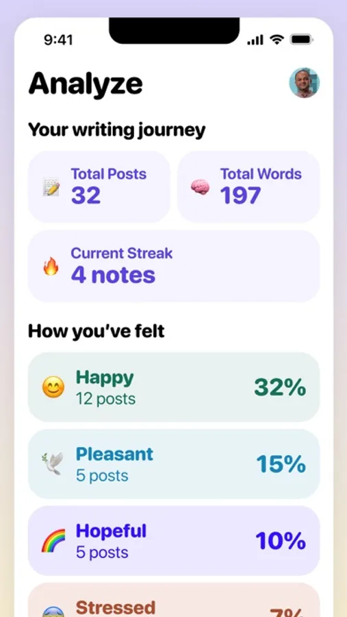 - Powerful Analytics: Understand your emotional patterns with our in-app analytics. Recognize trends in your feelings to help answer important questions about your mental well-being.