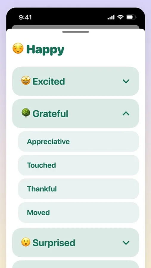 - Comprehensive Feelings Library: Explore a list of 150+ emotions. Our extensive catalog makes it easy to narrow down and pinpoint the exact emotion you’re experiencing at any given moment.
