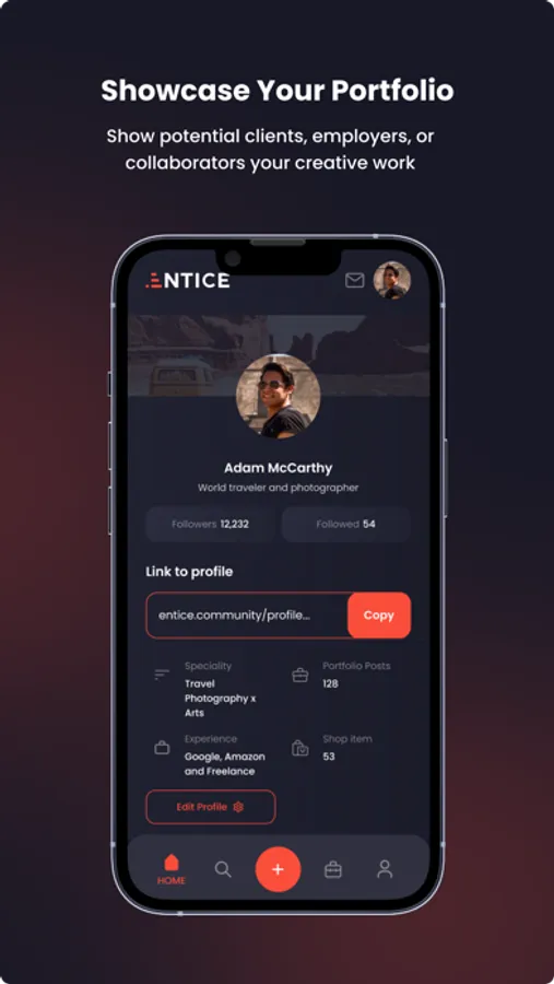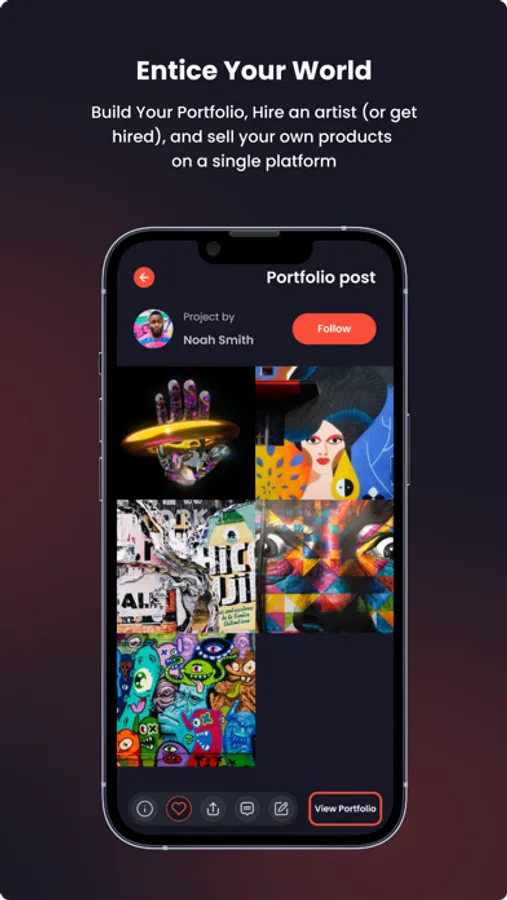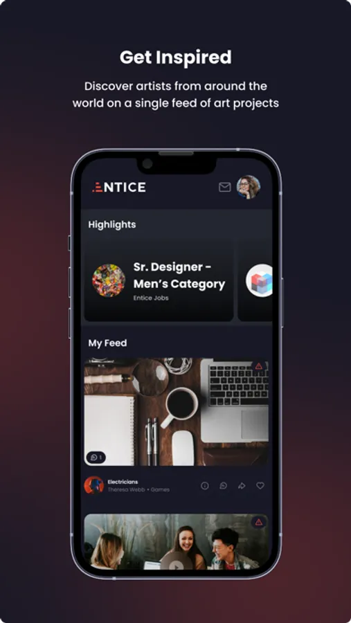 ENTICE is a creative empowerment community focused on connecting artists and creative people to economic opportunities. We are doing this by building a platform to find inspiration, build your portfolio of work, find your own job opportunities, and sell your own products all in a single space.