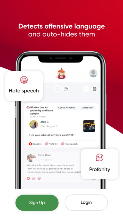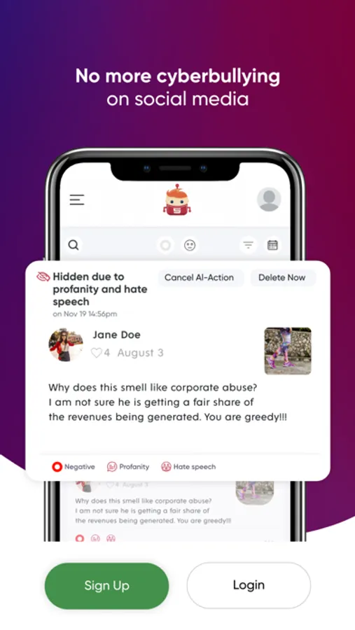 Socialays’s AI features keep your social media accounts safe from hate speech, profanity and spam by taking instant actions; such as hiding comments or blocking bullies 24/7!