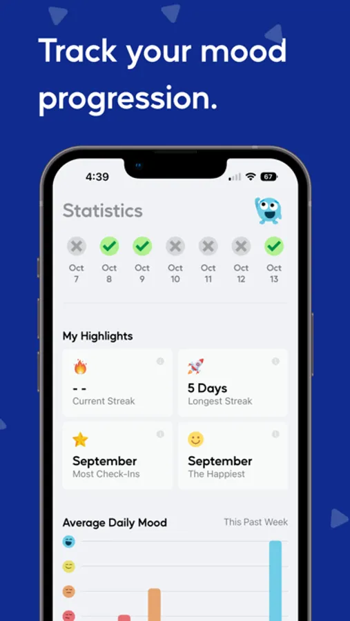 • Check your highlights to see your current streak, longest streak, most check-ins, and the month of the year you’ve been the happiest!