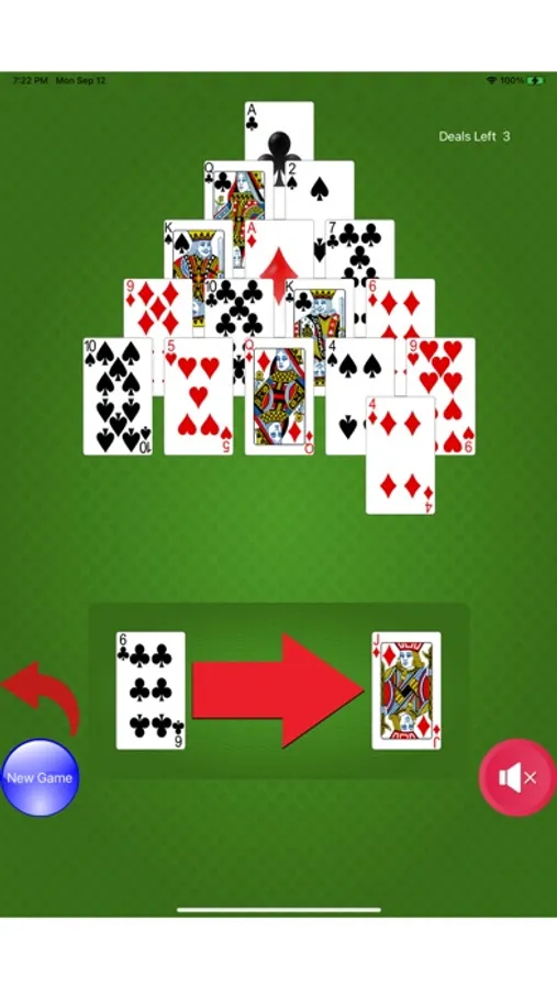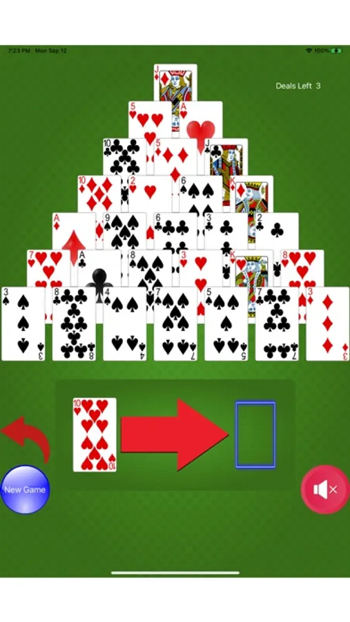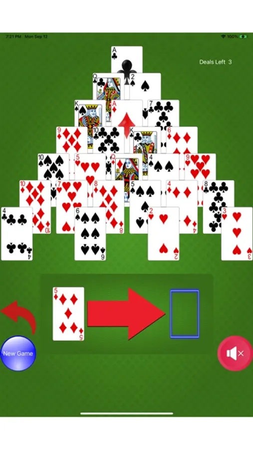 Would you like a Solitaire game with a slight amount of math included for good measure? Can you count to 13? Pyramid Solitaire is the game for you. The objective Pyramid Solitaire is to get rid of all of the cards in the card Pyramid. To get rid of the cards you have to select cards whose value equals 13. For example: a 6 and a 7, 2 and Jack, Ace and Queen. The King is 13 by itself so you only have to select one King to get rid of it. Pyramid Solitaire is a Solitaire game played with a 52 card deck set up in a triangle. You must match the accessible cards to get to the cards under it.