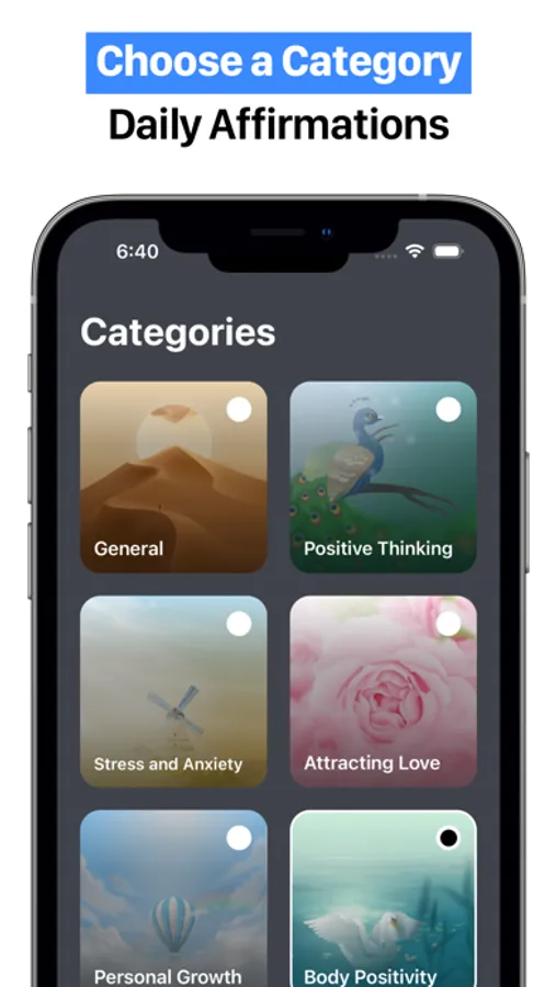 - Choose different categories for affirmations