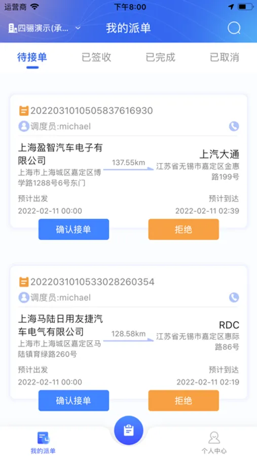 四骊TMS 安吉TMS,任务处理,派单查询。