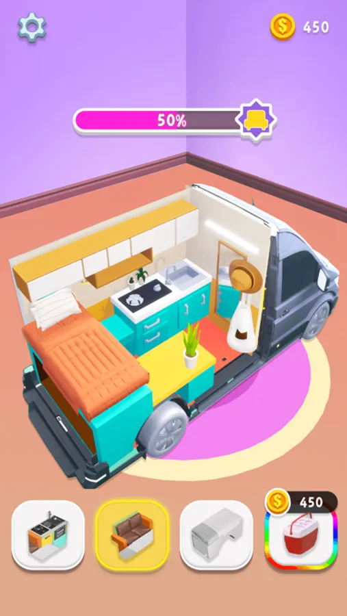 Assemble a wide variety of camper vans and customize them to your taste . Start as a rookie and level your way up to increasingly complex camper vans.