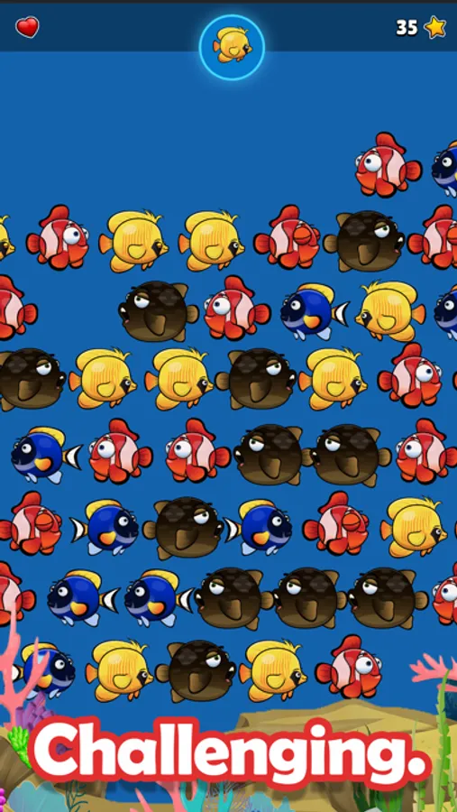 Tap and pop the swimming fishies that match the fish in the middle in this fast twitching adventure to progress to the next level for that awesome winning feeling! Finish the level with quick thinking and smart moves, and be rewarded with awesome power ups to help chain for even longer combos! Keep up the good work and try to achieve the High Score.