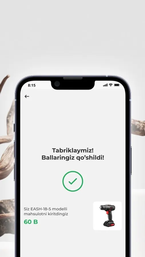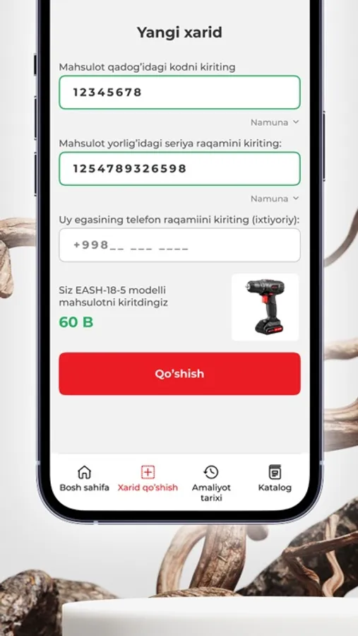 - Xarid qilgan mahsulotlaringiz uchun bonus olish. Buning uchun mahsulot stikeridaga yorliqni o'chirib, kodni ilova yordamida ro'yxatdan o'tkazing.