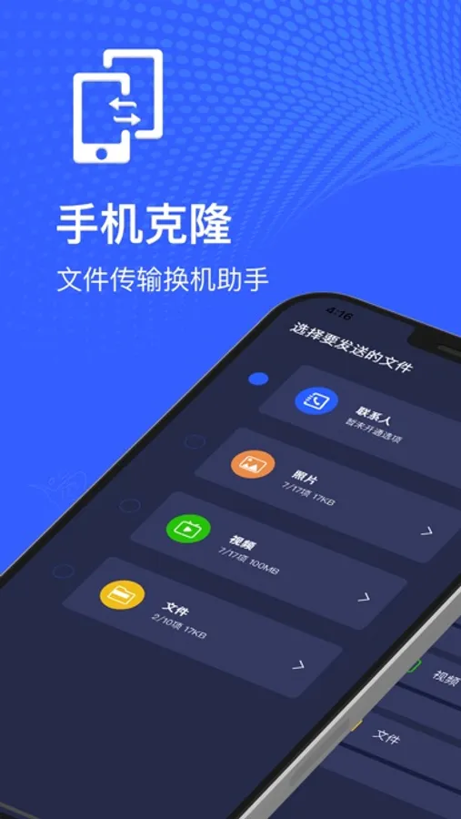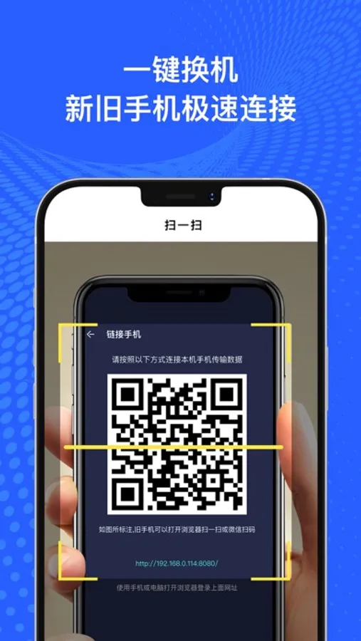 本应用是您手机换机传输数据的必备神器,支持一键传输通讯录、照片、视频等数据到新手机,超实用的手机搬家工具。