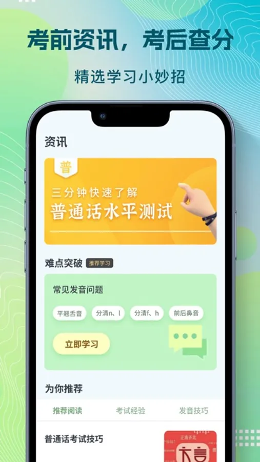 学习、练习、说好普通话推荐的普通话学习产品,学拼音,学汉语,学发音,闯过普通话等级考试。