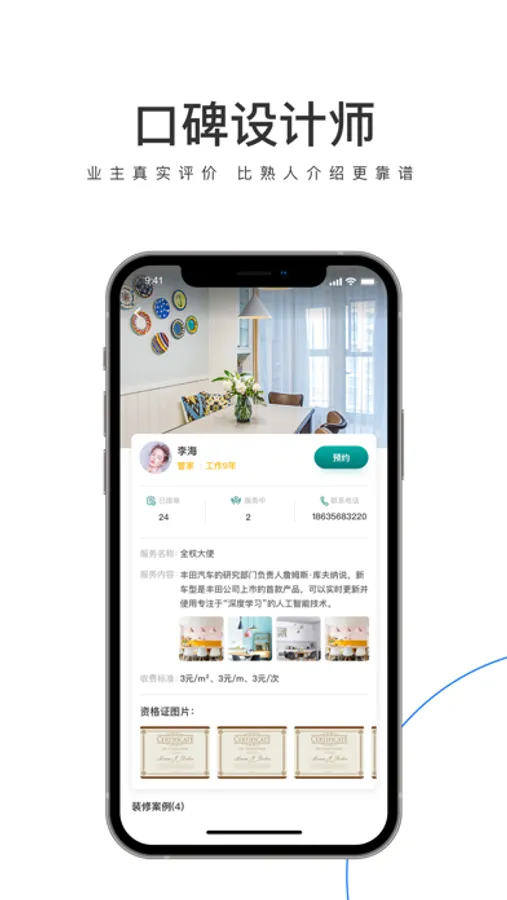 大型家装服务平台(我要装修),又上海饰云互联网信息技术有限公司自主开发,整合当地材料商,设计师,装修各种工人,管家,赋能于当地实体,协同实体高效,诚信服务广大装修用户.