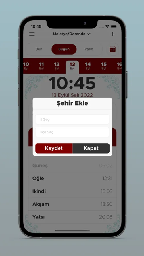 - Bulunduğunuz konum üzerinden namaz vakitlerini görebilirsiniz.
