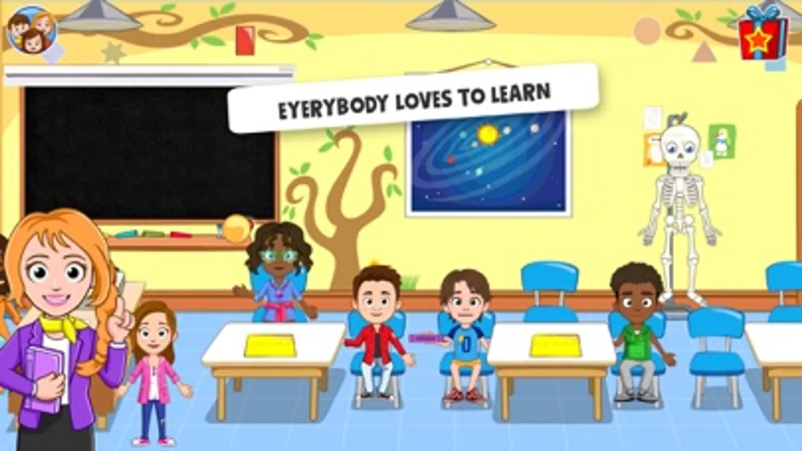 Back to school, kids! Go to school, grab your backpacks, enter a school bus and do not be late for a class. Play fun school games, attend chemistry class, music class, astronomy class and meet your classroom friends. Play as a teacher, student, parents and more! My Town School games for kids is an amazing role-playing game for the entire family. Fun school days are here! Simulate a school life and create your stories! Go to a school where you can learn and have fun!