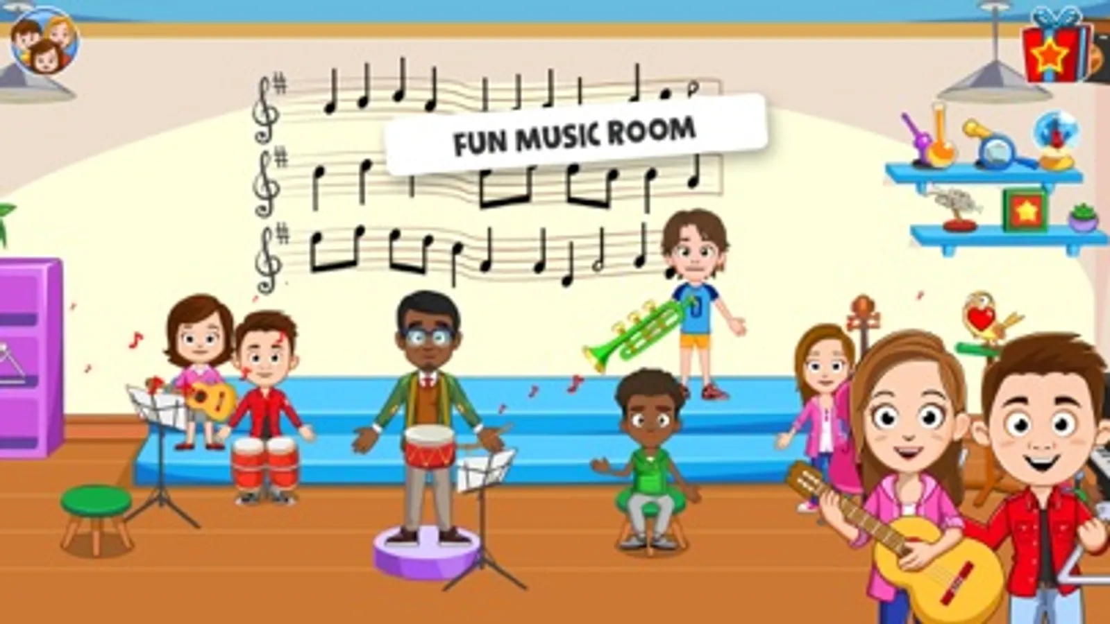 Do you love music? Learn how to play piano, guitar and drums! Visit a music class and prepare a concert with your favorite instruments. Simulate a real school life and create your stories!