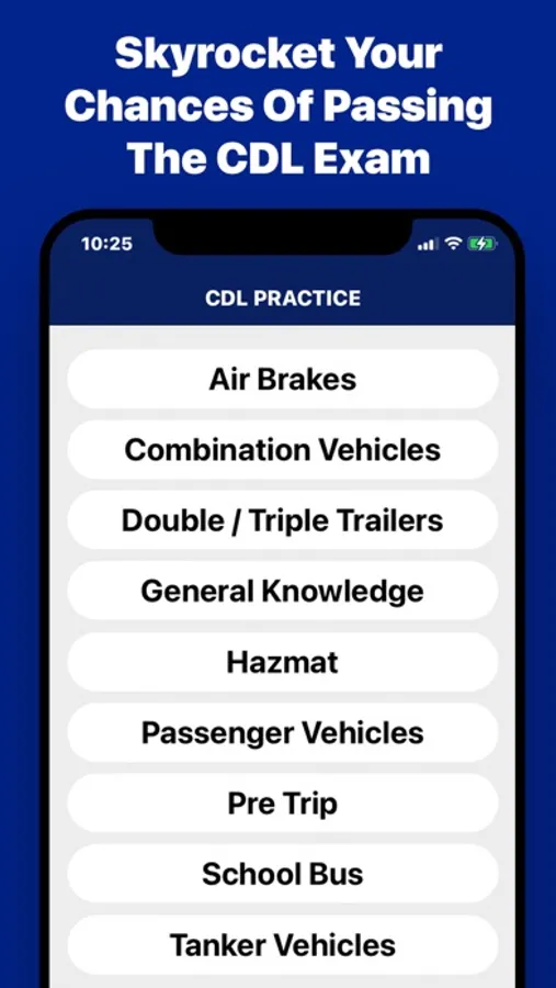 Includes everything you need to study and ensure you will pass your exam on the first try. Go over all the materials and prep yourself to pass the CDL Test successfully, this app will help you succeed.