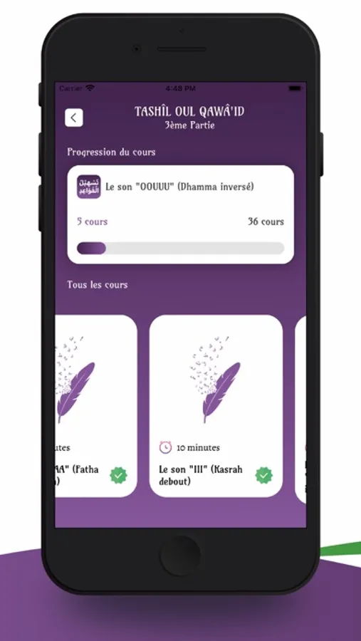 Découvrir les voyelles longues puis voir les houf-oul- maad , hourouf-oul-lîne, soukoun, chadda et les Maad. Il est composé de 36 leçons au total. De passer environ de 5 à 10 minutes pour chacune d’elles, tout en vous aidant de l’enregistrement vocal.