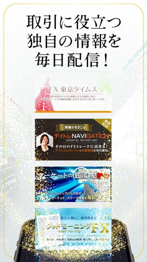 毎日更新される為替レポートや動画コンテンツを見たいときにスマートフォンで見ることができます。