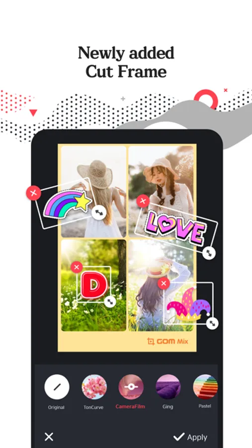 Cut Frame Video feature is newly added to make your own videos just with camera shots and simple editing!