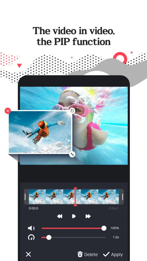 · With the PIP function, make exciting videos by inserting photo/video over a video
