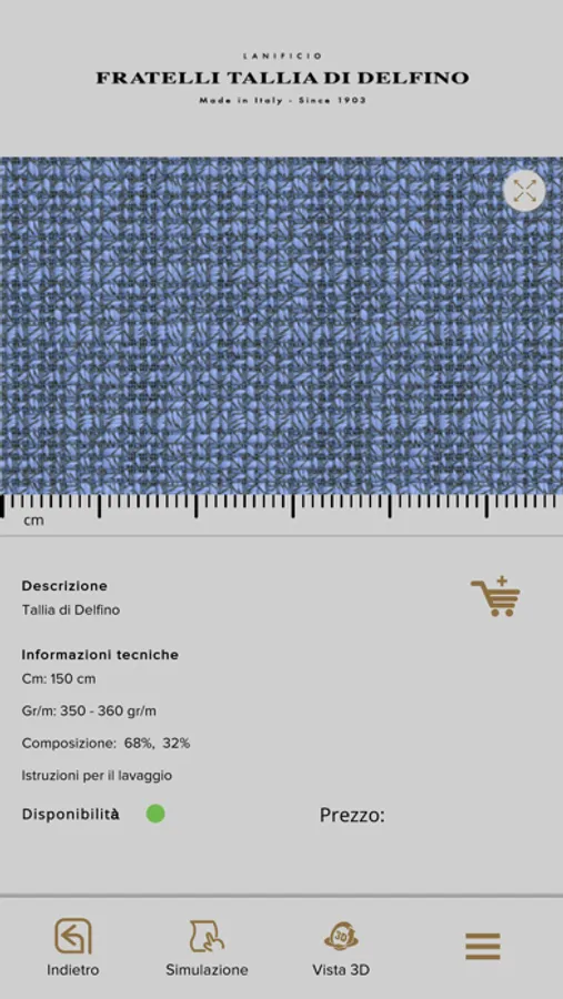 Tramite questa APP, in modo facile e veloce, è possibile scegliere tra le diverse tipologie di tessuti, verificare la disponibilità delle varianti selezionate e procedere all’acquisto. Grazie ai render digitali e alla possibilità di visualizzare i tessuti in 3D, la scelta sarà ancora più facile e immediata.