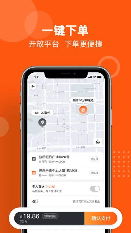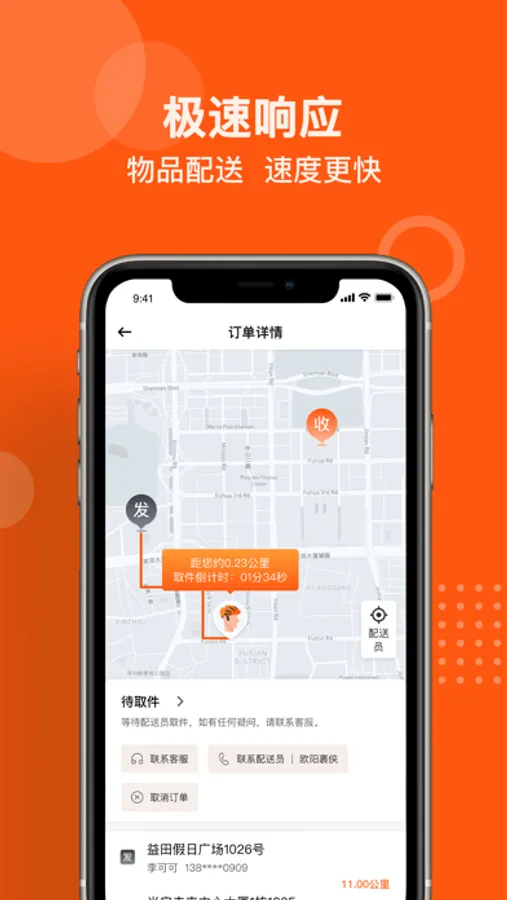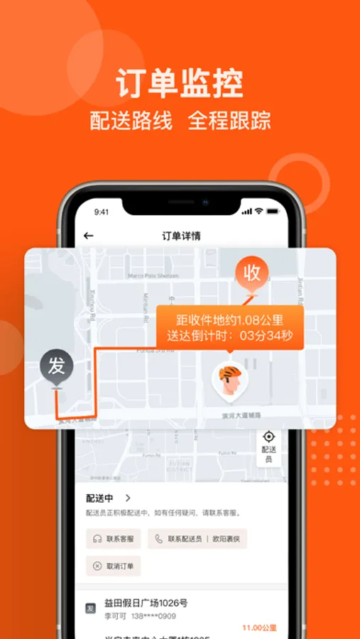 安全:安全保障,准时送达,配送员即取即送,配送无中转环节,直达目的地,全程实时监控。