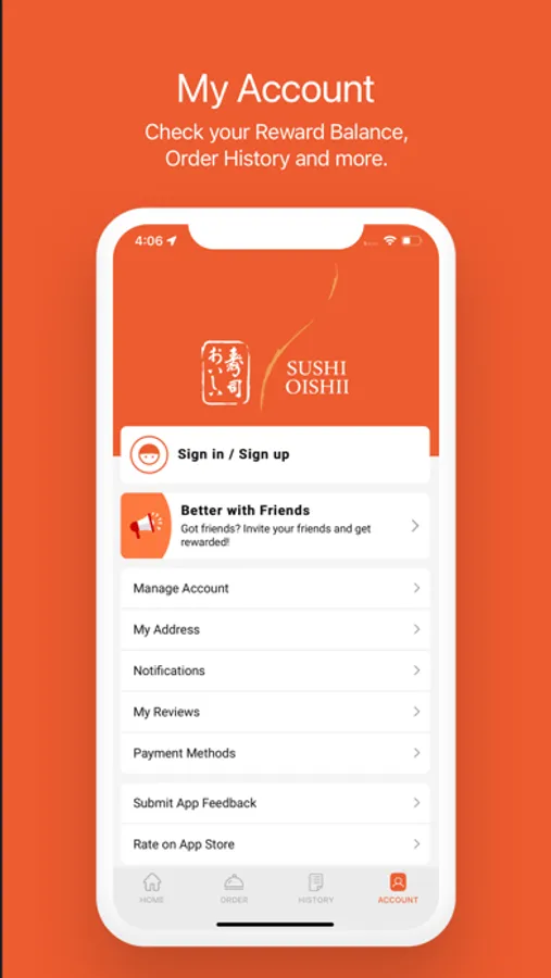 Check your Reward Balance, Order History and more.