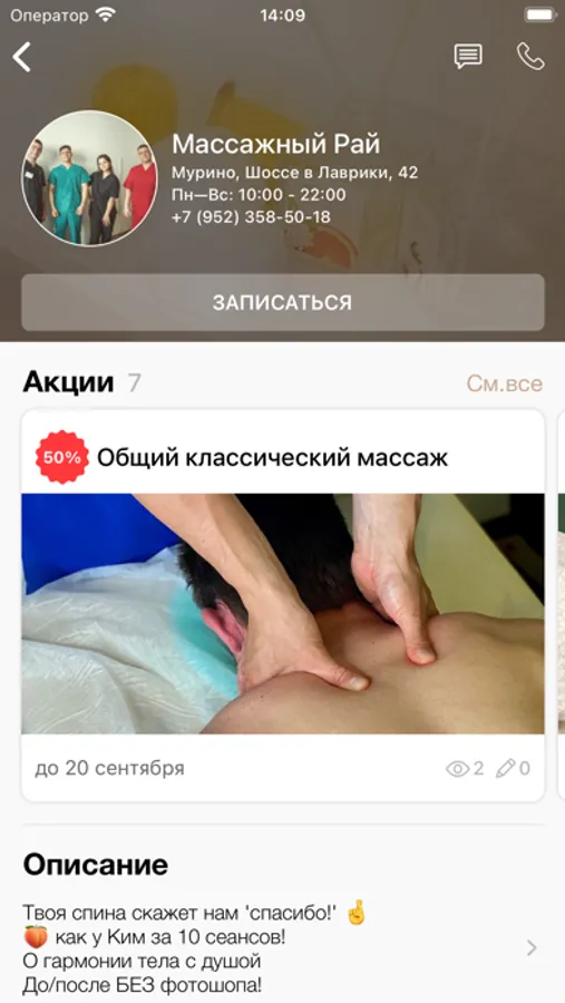 С помощью мобильного приложения Массажный рай теперь Вы сможете одним движением: