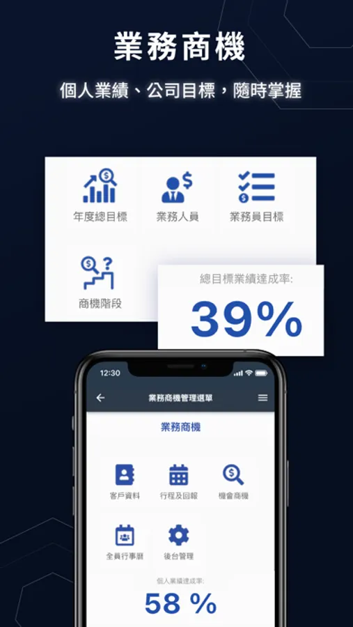 ► 提供管理員用App查看全公司業績達成率及以達成商機。