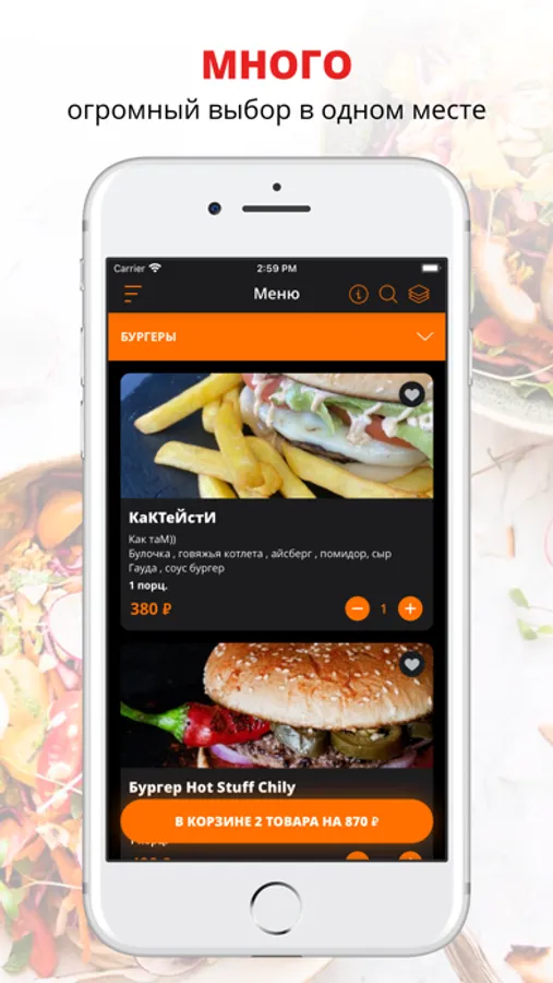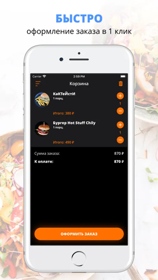 Скачивайте наше приложение, оформляйте заказ и наслаждайтесь любимой едой, где бы Вы ни были! Приятного аппетита!