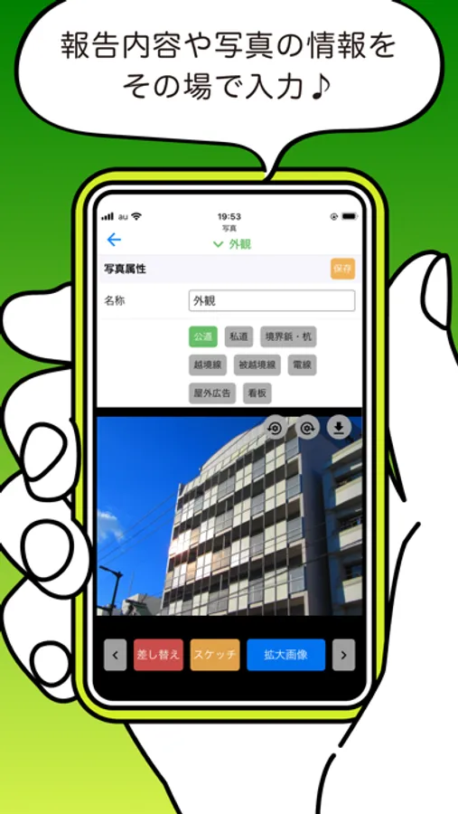 ShareSnap現地調査は、写真を多く撮影する業務に就いている方に向けた、業務改善を目的としたアプリです。