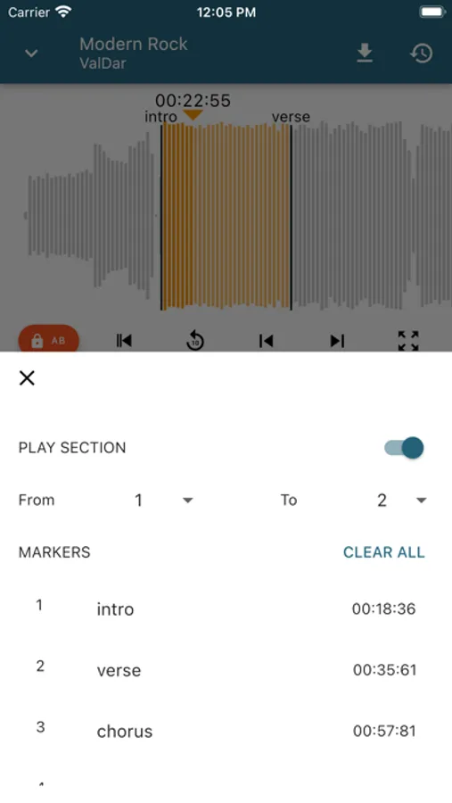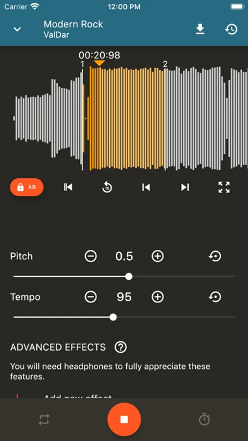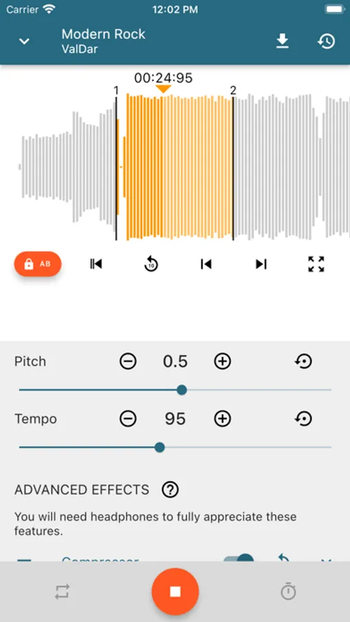 Stuck on a particular section? Precisely set points to loop between. Need more accuracy? Pinch and zoom to get a more detailed waveform view.