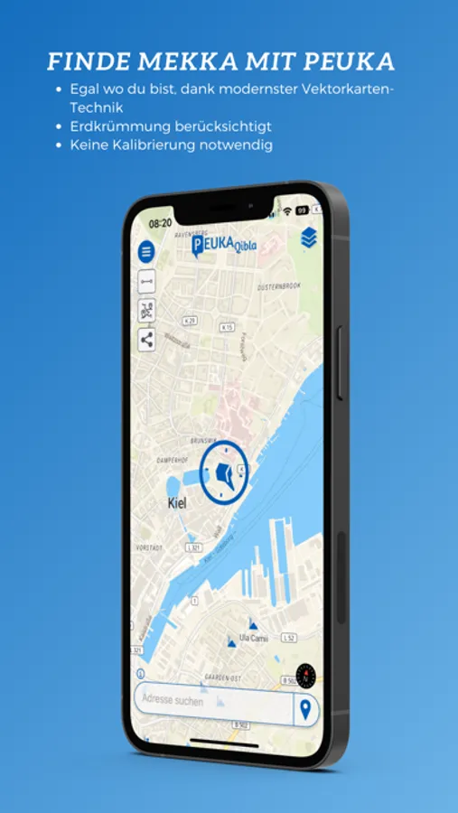 Mit der Qibla-App findest du überall und super einfach die Richtung nach Mekka. Richte dich für dein Gebet korrekt aus, auch wenn du unterwegs bist. Die Qibla-App macht es dabei so einfach wie möglich und kommt völlig ohne lästige und ungenaue Kalibrierung aus. Wir setzen auf genaue Vektorkarten-Technik und beachten natürlich auch die Erdkrümmung.