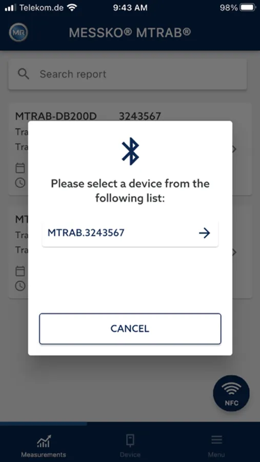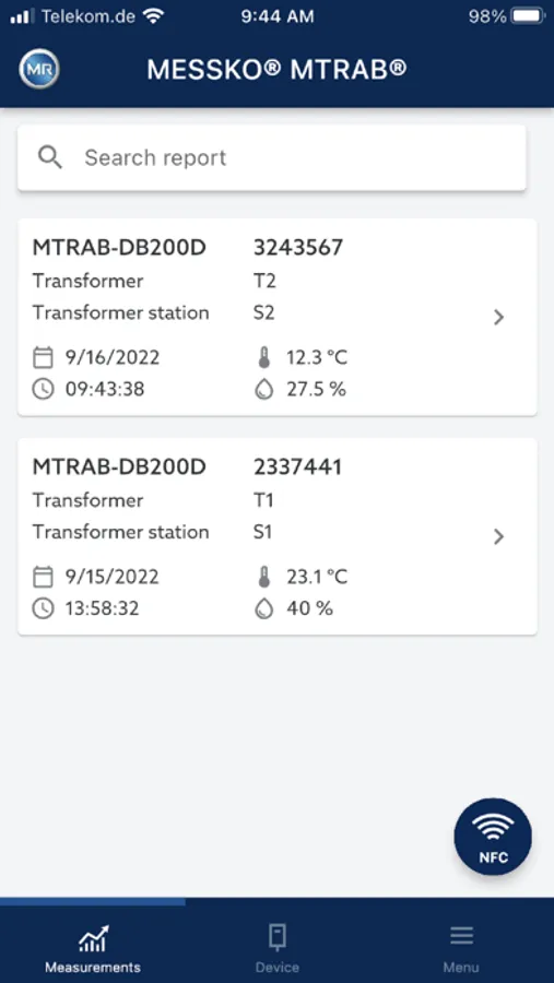 You own a MESSKO® MTRAB® 2.5 with NFC (Near Field Communication) and Bluetooth®. Read out the entire data memory of your device simply and easily using the MESSKO® MTRAB® app on your smartphone. Download the app now, free of charge.