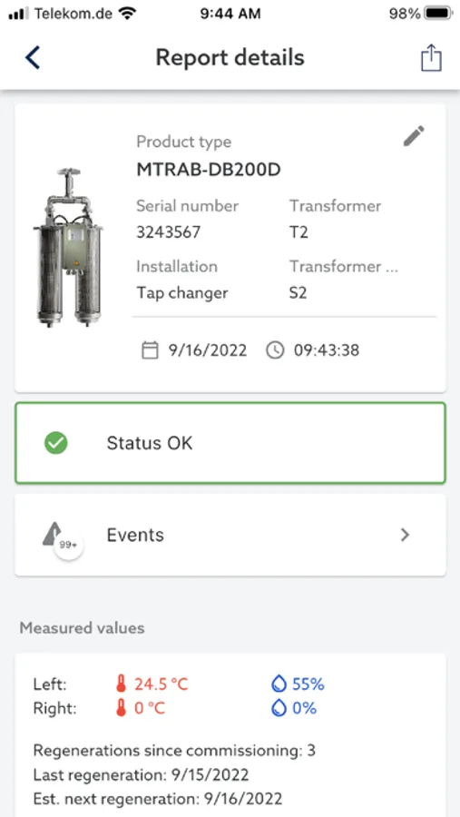 You can send the data to Maschinenfabrik Reinhausen GmbH by e-mail straight from the app.