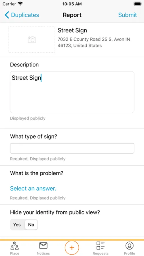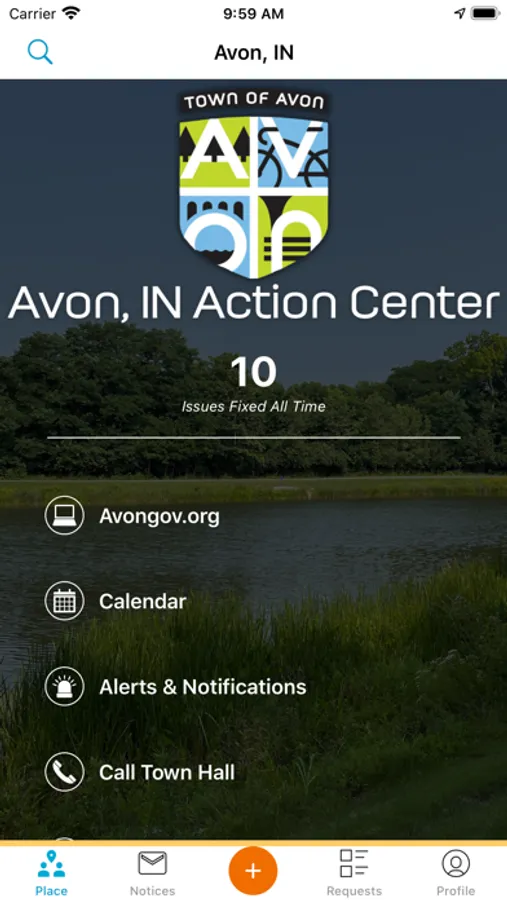 The new Avon Indiana Action Center is here! It will allow all members of the community to easily report issues on potholes, street lights, traffic lights, standing waters, street signs, trees, abandoned vehicles, illegal dumping, playgrounds, trails, park facilities and more! New categories will be added monthly. This app uses your location and gives you a menu of common quality-of-life conditions to choose from in your service request. Uploading a photo with your report also helps the Town of Avon staff quickly identify the problem. You may comment on your submissions and you will be notified when the status of the issue is updated. #OneStrongCommunity