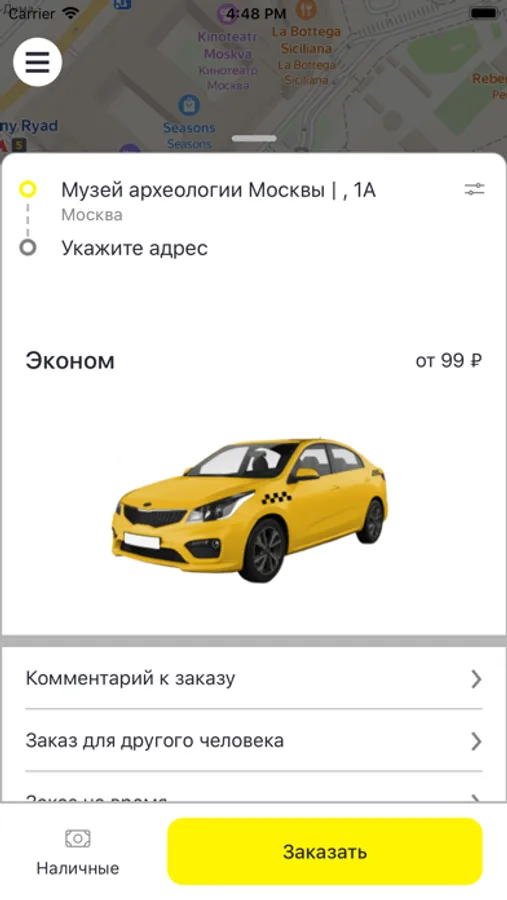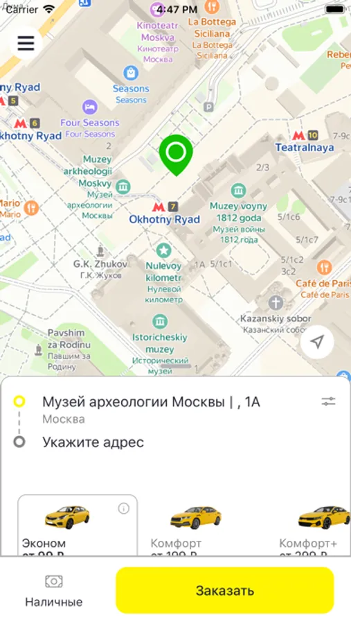 Вы указываете, куда ехать, и сразу видите цену поездки и предполагаемое время в пути. Оплатить можно картой или наличными водителю.