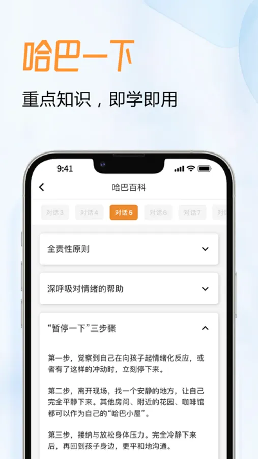 「哈巴一下」中每个主题,都有14个单元的学习内容,是一步一个台阶、循序渐进的过程,每次都会提升你认知力、感受力、行动力三个维度的能力。