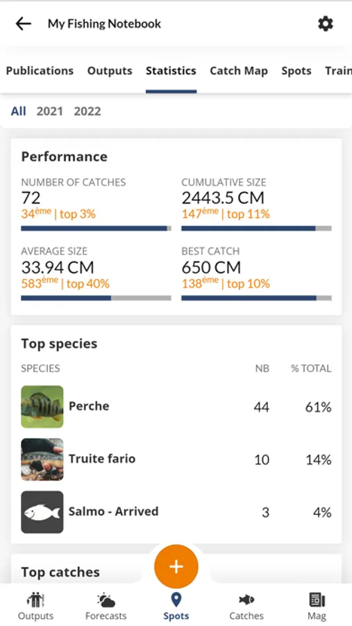 Find, in one click, all the forecasts for your municipality: tide times, marine weather and our sea bass fishing index. The site also gives you the ranking of the most caught fish species city by city.