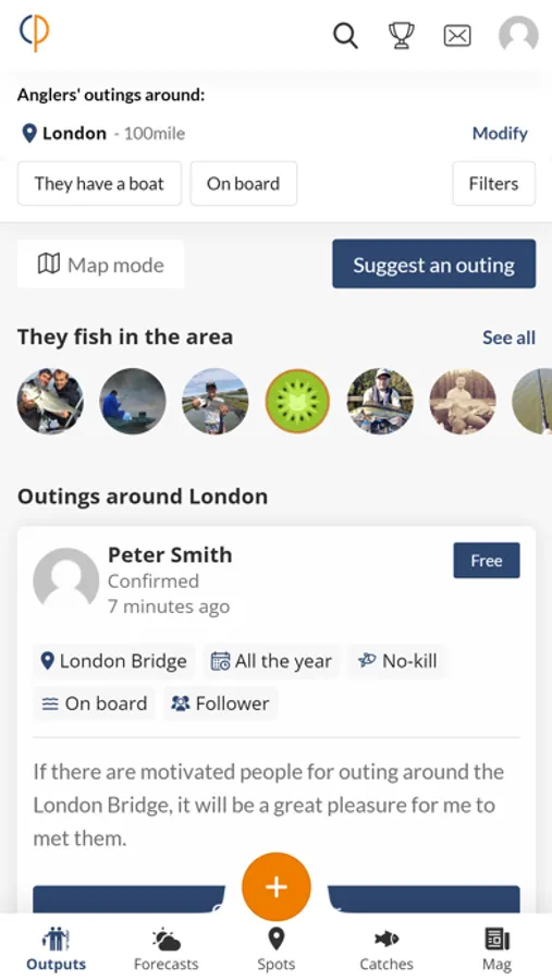 Come share your passion with other anglers in your area. You want to meet other fishermen: search or suggest outings.