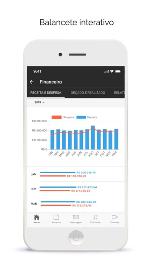 - comparativo de orçado versus realizado (gráficos e detalhamento)