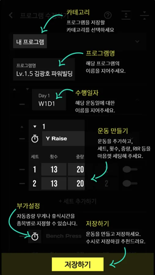 - 정확한 휴식시간과 볼륨 측정으로 점진적 과부화 달성